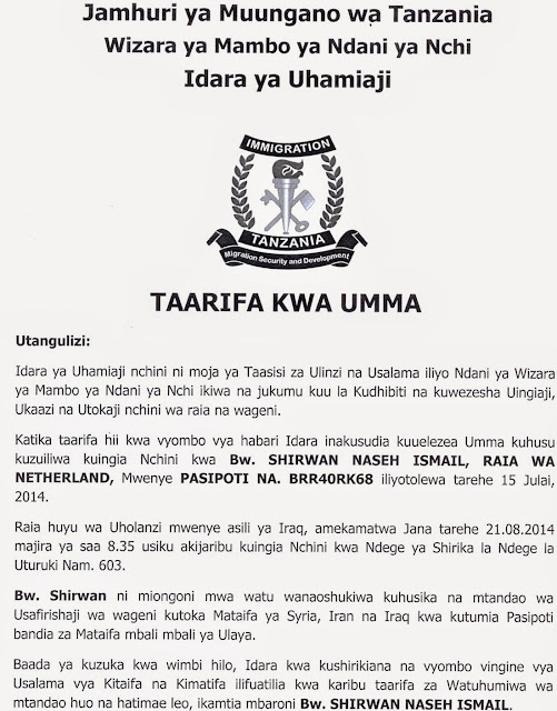 Bw. Shirwan Naseh, raia wa Netherlands  mwenye asili ya Iraq aliyezuiliwa kuingia nchini na kupigwa pigwa PI na Idara ya Uhamiaji